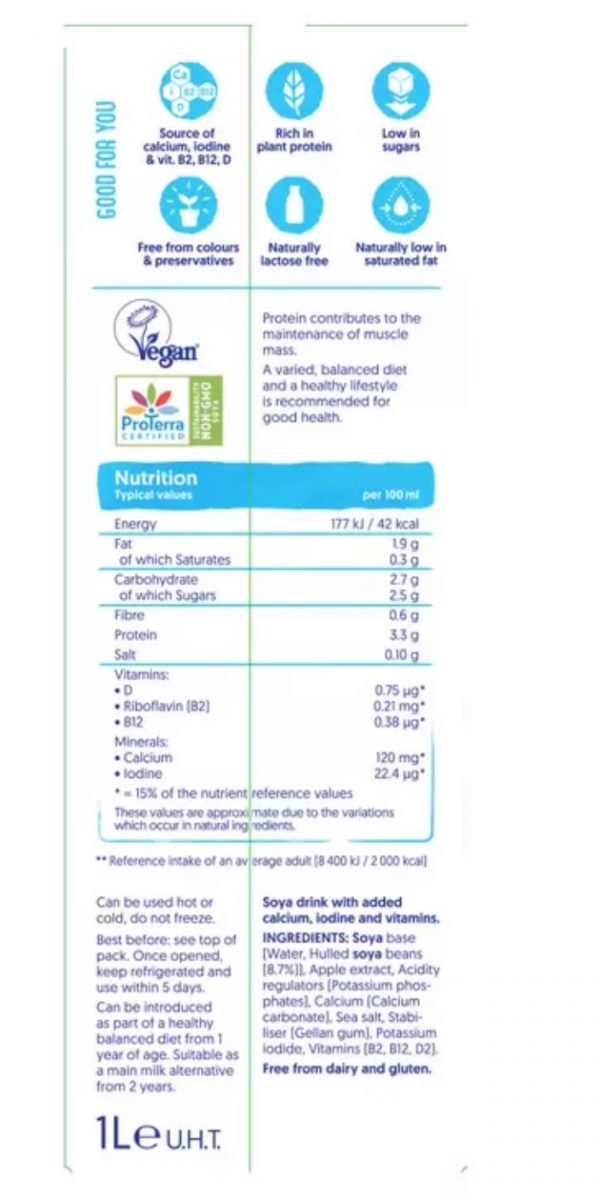 Alpro Soya Drink is a 100% plant-based milk alternative. This soya milk is full of nutrients and low in sugar and can be used with your breakfast cereals, in teas and coffees, and in baking. Enjoy creamy Alpro Soya Drink, the perfect dairy-free choice for smoothies, cereals, and more. Try plant-powered nutrition today! Place your order now at wayfreshgroup.co.uk.