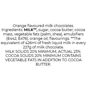 Classic Cadbury Dairy Milk infused with real Orange oil. Suitable for vegetarians.