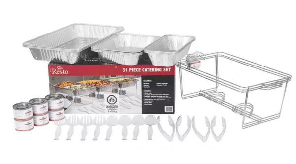 Resto 31 Piece Catering Set offers a set of everything you need to cater at food stalls, weddings, parties, BBQ’s, or special events. Whether you are hosting a big event or want to impress your guests with a mouth-watering buffet. This Resto Catering Set keeps food at the perfect temperature. It keeps it fresh and full of flavor!