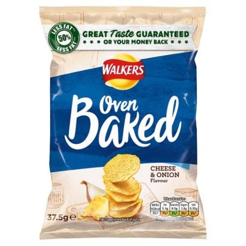 Delivering that delicious classic cheese and onion flavour, the Walkers Baked range offer all your favourite flavours with the added benefit of containing up to 50% less fat than the regular varieties. Oven baked to ensure extra crispiness and crunchiness, Walkers Baked contain no added MSG, artificial colours or preservatives. This pack contains 32 37.5g packets of crisps.